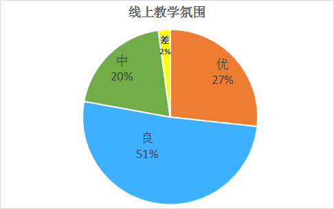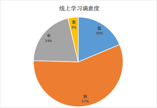 自开学近两月以来,公司线上教学运行顺利,教师已经充分掌握了各教学平台及工具的使用方式,学生满意度较高,并已经逐步适应了疫情期间特殊的学习方式,师生配合良好,较好地完成了教学任务。针对此问卷中同学们提出的意见和建议,学院将积极反馈,实时监控线上教学效果,为正式开学复课做好充分的准备。