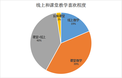 同学们这段时间对线上教学有了更多的了解,哪种授课模式更有助于学生学习呢? 复课后,还愿意接受线上教学吗?从调查来看,比起线上教学同学们还是更喜欢课堂教学,或者更愿意接受线上教学作为补充来开展教学: