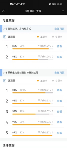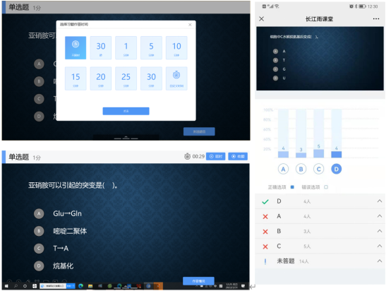 梁燕老师通过雨课堂的深度使用,使课堂“动”起来。一章结束后通过投稿功能督促大家回顾本章重点内容,而后汇总生成词云集大家的共同力量对本章内容进行梳理起到查漏补缺的作用。课堂投稿、习题的无缝切换使同学们真正的参与到课堂中。课后布置的章节作业,通过语音讲解,使大家对知识有更加深入透彻的理解,在巩固知识的同时,还鼓励大家通过多元化的方式对知识进行展示还增加了作业的趣味性。例如在DNA复制机制的教学过程中,充分发挥学生自主学习的能力,指导学生进行复制模型的制作和机制的讲解,极大的提升了教学效果。