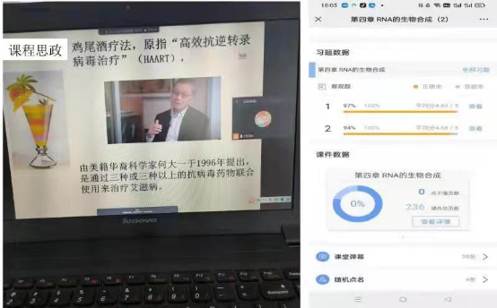 杨杞老师在新的培养方案、教学大纲和课程教材的基础上,进一步优化教学内容,在课堂上有限的学时内,以分子生物学最“核心”的内容为主线,注重基础和重点知识的讲解,在课堂教学过程中有机融入“四种实例”,帮助学生更深入的理解分子生物学的基本理论及应用。同时通过“四种实例”将思政元素有机融入教学过程中,帮助学生树立正确的人生观、价值观,激发爱国主义情怀,培养刻苦钻研的科学精神和严谨认真的学术态度,例如同时结合课堂测试督促学生学习过程。