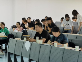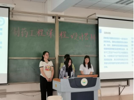 答辩会伊始,生物制药工程系党支部书记万永青老师向学生说明了答辩规则及要求。答辩小组按抽签顺序根据各自小组的实际设计成果,充分运用专业知识,以PPT的形式对设计概述、工艺说明、物料衡算、设备选型、工艺图纸等方面详细阐述了课程设计的成果。老师们针对每组设计内容及图纸进行提问,考察同学们对自己设计内容的熟悉程度并指出设计说明书及图纸中存在的问题。同学们回答简明准确,虽然仍然存在不足,但都得到了老师们的肯定。答辩最后,答辩组的老师们本着严谨负责的态度认真审阅各组的课程设计说明书,提出宝贵建议。