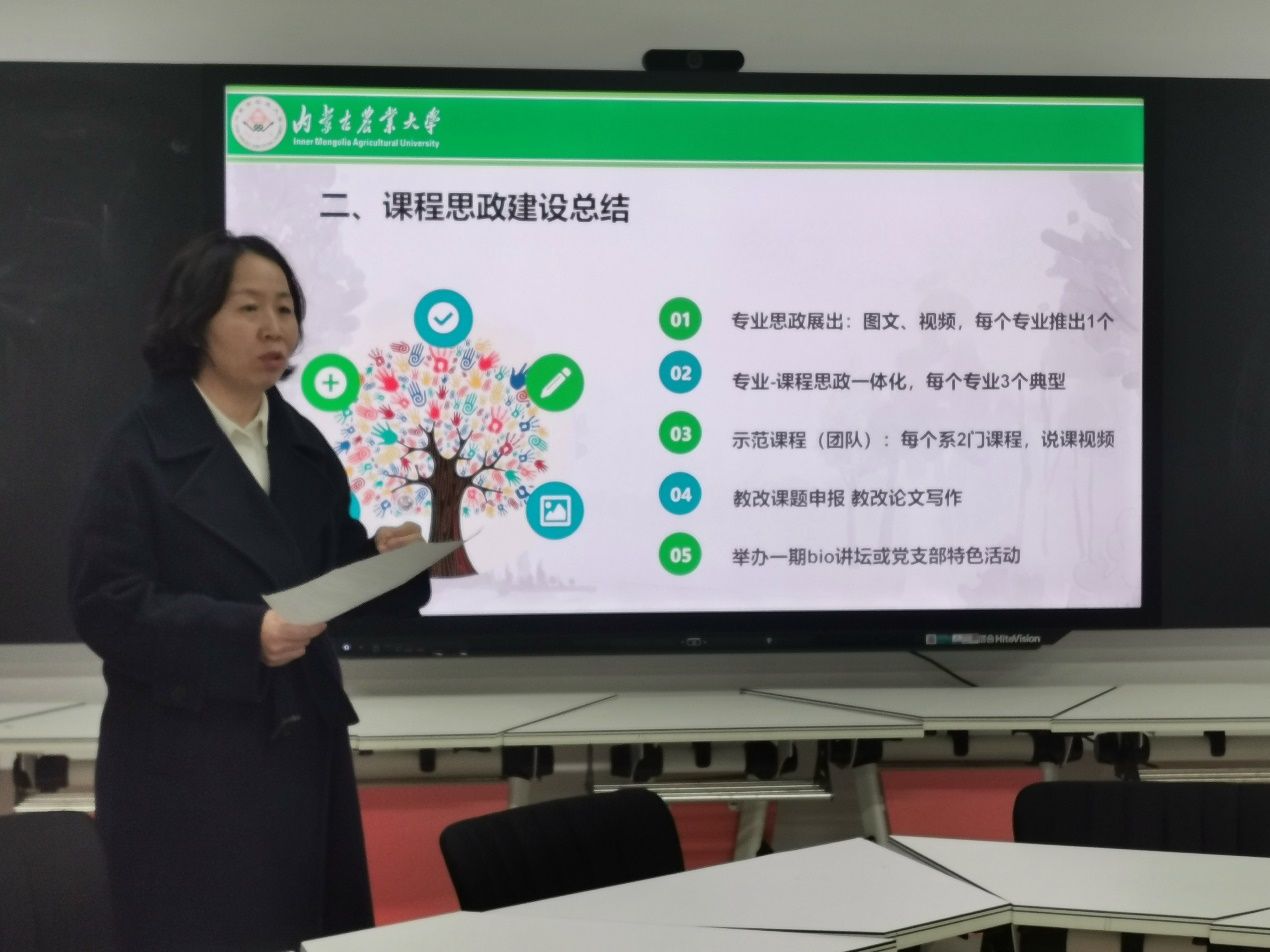 会议伊始,王玉珍副经理从总体思想、课程思政建设总结、专业建设和近期工作四个方面作了题为“AG真人国际审核评估特色亮点工作谋划”的报告,她提出应以学生为中心的四位一体即“课程思政聚思想、生物技术创引领、理工融合兴农业、科技创新强素质”为总体思想,并对下一阶段的系内工作内容作了进一步部署安排。随后审核评估工作小组成员就试卷论文检查提出优化方案,建立实习实验报告规范化要求,提高学生的规范意识。
