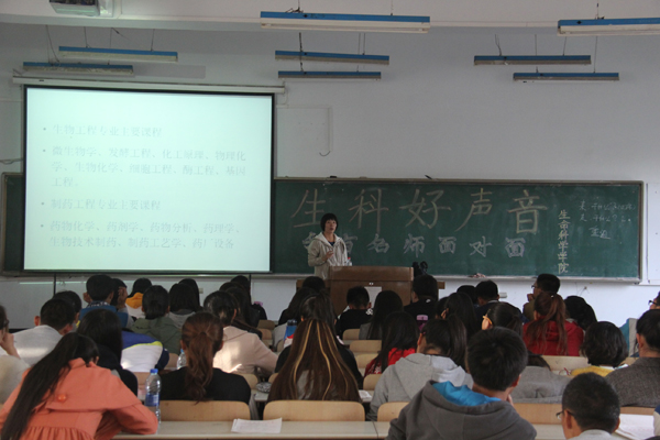 首先,李老师提到好的选择受益一生,为了让大家了解自己所选的专业,了解专业方面的知识特举办此活动。接下来,李老师对同学们未来四年学习的态度做了严格的要求。她强调端正学习态度是同学们近期必须完成的任务,态度决定一切。而后对本专业学习的课程及就业前景李老师又做了详细的介绍。她谈到生物制药是主要的专业课程,基因工程为现代生物工程的核心。谈到就业问题,李老师用辩证的观点客观的分析了当前国内本专业的就业形势。座结束时,李老师又一次提到了学习态度的问题并提到,不忘初心,方得始终。
