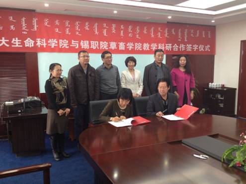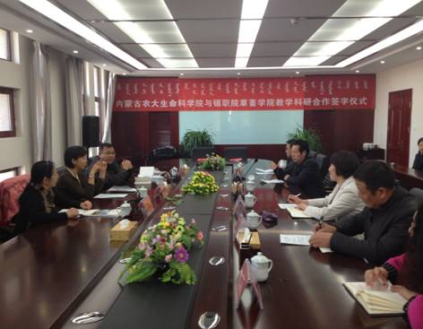 11月11日,李国婧副经理、任燕刚副书记、田瑞华老师等人一行到锡林郭勒职业学院草原生态与畜牧兽医学院签订教学科研合作框架协议,职院常务副经理南洪钧、草畜院经理劲松、书记哈达朝鲁等人出席了签约仪式。双方就对口团队建设、科学研究、团队队伍建设、科学成果转化与推广应用、技术服务、人才培养培训等方面达成了合作共识。仪式结束后,在草畜院领导的陪同下,对草畜院实验室、标本室、学生课堂以及职院图书馆进行了参观。