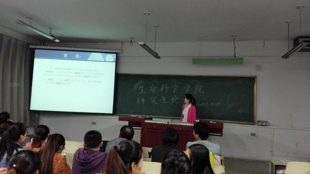 2015年9月29日,第4期AG真人国际研究生论坛在博学楼成功举办。曹贵方教授、巩培老师和李齐老师出席了此次论坛。本次论坛邀请到细胞生物学科硕士研究生康丹丹和张钰堃同学做了精彩的演讲。