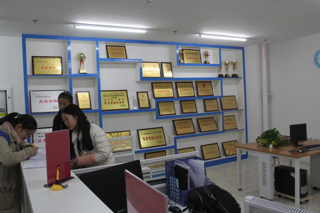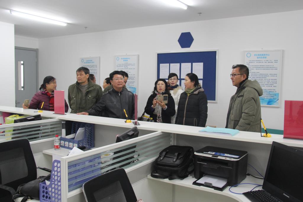 靳主席一行先后参观了公司教职工羽毛球场地、乒乓球场地和教工之家,对全新的设施、宽阔的比赛场和温馨的教工之家地赞不绝口,并且亲自试用其中的设施,对公司“教工之家”的建设情况给予了充分肯定。最后,参观了公司学生“一站式”服务中心。