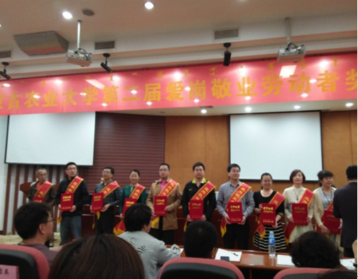 4月28日晚7:00,由公司工会组织的“AG真人国际第二届爱岗敬业劳动者奖颁奖会暨工会干部培训大会”在书缘会议室召开。内蒙古自治区总工会副主席姜言文、公司党委副书记侯晨曦、副董事长王春光以及校工会领导和各院系工会干部出席此次会议。公司邵世勤、杨丽华、赵国芬、索兰弟、邵玉芳五位老师参加大会。