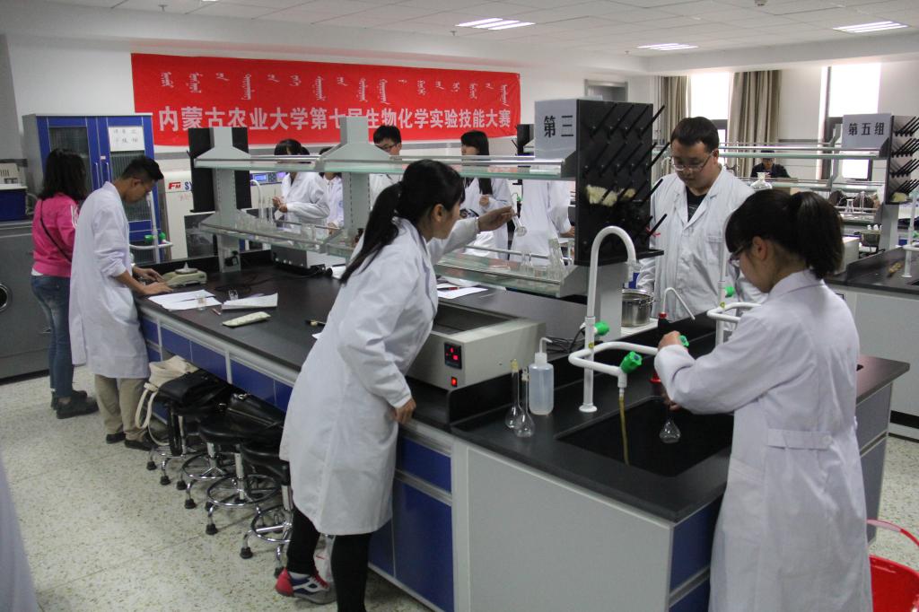 由校团委、教务处、科技处、学生工作处、人才招聘处、内蒙古生物工程学会主办,公司团委承办的AG真人国际第七届生物化学实验技能大赛复赛——实验操作,于5月8日上午8:00在生科大楼创新创业中心成功举办。本环节评委由赵国芬教授、王桂花副教授、王志林副教授及讲师刘杨担任。