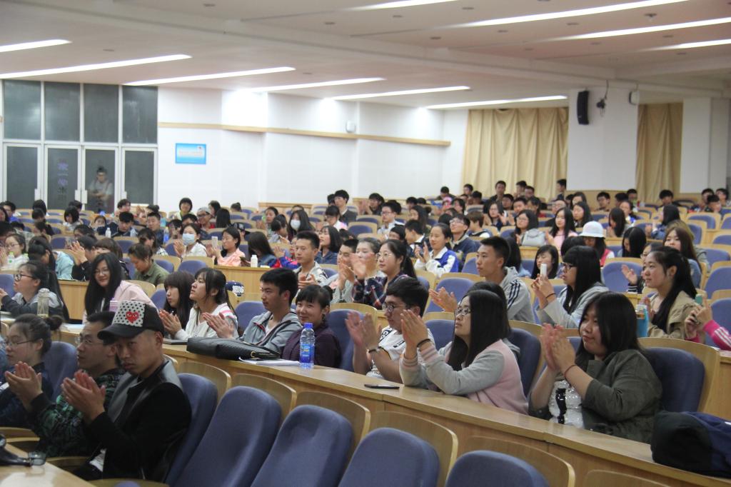 讲座伊始,王启松教授介绍了自己学生时代,科研生涯和下海经商三个重要人生阶段的经历,并且和学生们分享了自己成功的制胜法宝——“三高学习法”,即高强度,高密度,高标准。他用自己的亲身经历充分证明唯有勤奋才能取得成功的道理,勉励当代大学生要刻苦学习,拼搏进取,用勤奋铸就辉煌。同时,王教授还详细介绍了他在创业时期的艰难历程,并且提出了两个希望,鼓励大学生创业,利用天时、地利、人和迎接中国科技创业新时代的来临。王教授演讲中幽默诙谐的语言和丰富深刻的内容使讲座现场掌声不断,高潮迭起。