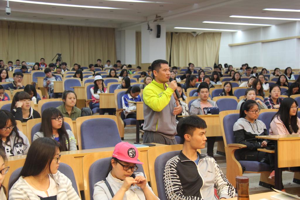 在王教授的精彩演讲结束后,学生们意犹未尽,针对“互联网+”,大学生创业以及选择专业等问题进行提问,又一次将现场气氛推向高潮。王教授睿智的解答令同学们茅塞顿开,获益匪浅。本次讲座中,王启松教授以个人的奋斗历程和成绩为例,充分证明了“以勤奋为信仰者,定成大器”的道理,对大学生的人生具有深远的教育意义。王教授的个人经历和阅历,为刚刚进入生命科学领域的年轻人提供了正确的方向和学习方法,坚定了学生对生物专业和生命科学行业的从业信心,为有志自主创业的大学生提供了有效建议和帮助。