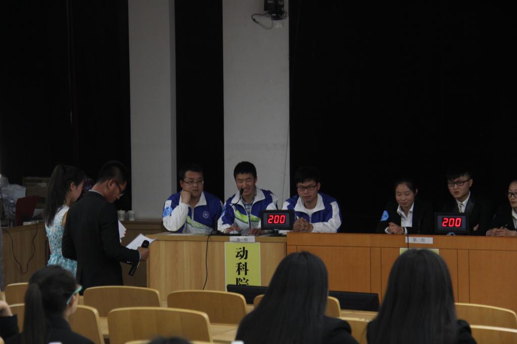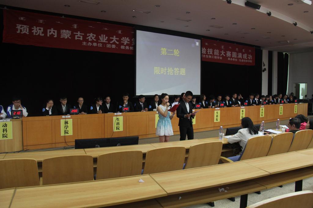 5月15日下午2:30,由公司承办的AG真人国际第七届生物化学实验技能大赛复赛——知识竞答环节在西区科技报告厅拉开帷幕。本环节评委由魏建民教授、赵国芬教授、王桂花副教授、王志林副教授担任。来自林学院、食品院、AG真人国际等5个参赛学院代表队的亲友团同学观看了此次比赛。