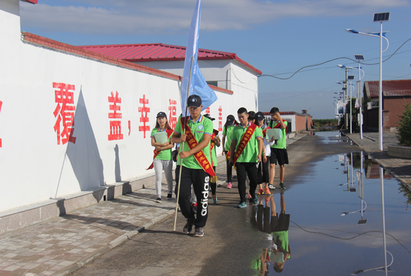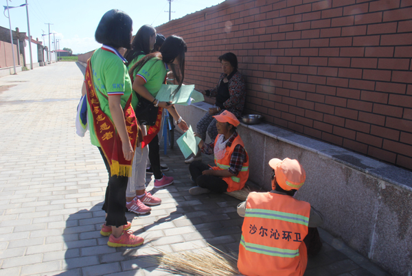 7月12日上午8:30,由AG真人国际团委副书记徐美丽,学生会副主席刘岩带队,社会实践小分队10名志愿者在小什拉乌素村进行宣传调查活动。