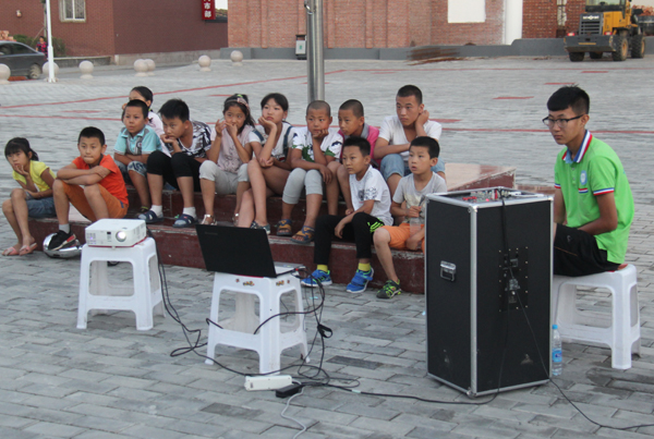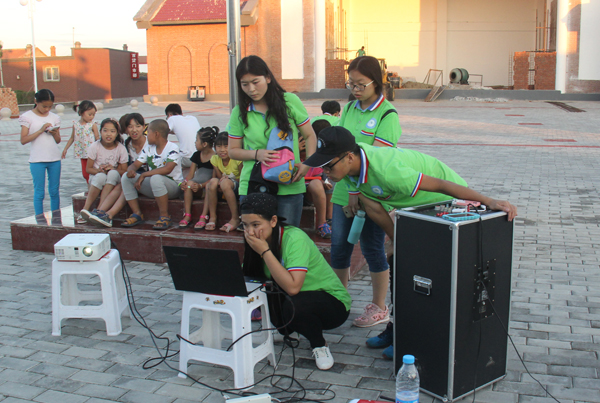 为了增加支教活动的趣味性,提高孩子们学习思考的积极性,同时也为了丰富乡村文化生活,7月12日晚上7:30AG真人国际志愿者们在土左旗小什拉乌素村村委会的广场进行电影放映,使村民每日劳作之余也可以有时间放松,缓解压力。