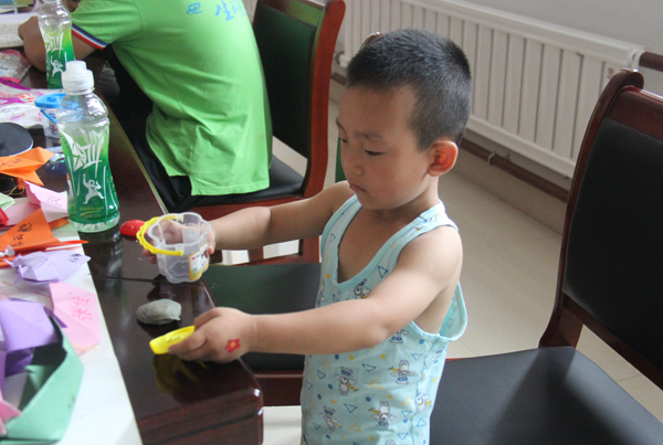 上午8:30志愿者们到达了目的地,听说了今天的教学内容后,孩子们积极性都特别高,一大早就在村委会门口等待“小老师”到来。通过前一天的熟悉与了解,孩子们渐渐地喜欢上了和老师们学习玩耍,每个人都表现得非常好。志愿者中不乏心灵手巧的人,他们教孩子们学习折纸船、画画,并且带领孩子们把家乡的变化以及自己的梦想写进画进自己的作品里面,以通俗易懂、幽默风趣的语言讲述在“十个全覆盖”的实施下家乡的巨变,引导小朋友们心怀感恩,放飞梦想。最后,实践队员和孩子们在自己的作品前合影留念。