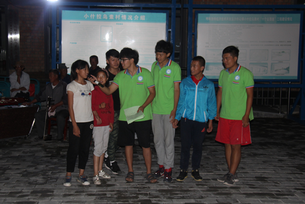 为了丰富村民的文化生活,传播积极的生活态度和方式,同时也为社会实践队员和老乡们提供一个展示自我的平台,7月14日晚上8:00,AG真人国际暑期“三下乡”社会实践队员经过自主策划、筹备,于小什拉乌素村村委会广场举办了一场别开生面的文艺汇演。小什拉乌素村党委书记洪艳平,小什拉乌素村村民及公司社会实践队员观看了演出。