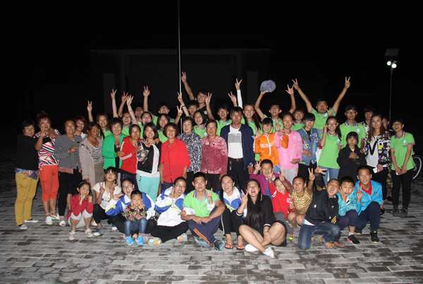 晚上11:00,AG真人国际2016年暑期“三下乡”社会实践文艺汇演圆满结束。小什拉乌素村党委书记洪艳平及村民与实践队员合影留念。