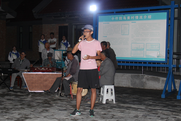 本次晚会最大的亮点就是,公司宣传小分队在调查宣传时发现的乡村乐队,它由爱好扬琴、二胡、小鼓等乐器的老乡们自发组织成立。晚会上,他们带来了一场旋律动听的民乐合奏,曲风轻快,韵味十足,同时充分体现了小什拉乌素村对当地非物质文化遗产的重视与保护。晚会中,公司实践队员和村子里的妇女表演得广场舞,顿时将现场气氛推向高潮,欢呼声,呐喊声此起彼伏。独唱《我爱你中国》作为压轴曲目最后呈现,队员王春生实力派深情演唱,大家举起手机闪光灯,齐声附和,合唱声久久回荡在小广场上空。