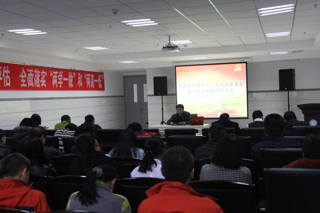 11月10日,学院召开了全院教工大会,学习十八届六中全会公报,公司党政领导和全体教工参加了此次会议。会上,公司党委书记林宝传达学校关于组织全校师生学习十八届六中全会的有关会议精神,并讲到:“十八届六中全会公报思想深刻、内涵丰富,表明了以习近平同志为核心的党中央坚定不移推进全面从严治党的决心。广大教工要深入学习贯彻党的十八届六中全会精神,牢固树立政治意识、大局意识、核心意识、看齐意识,坚定不移维护党中央权威和党中央集中统一领导,继续推进全面从严治党,在迈向伟大复兴中国梦的新长征路上再创辉煌。各党支部广大党员在学习十八届六中全会的过程中要结合工作实际,提升理论和工作水平,全面推动学院工作向前发展,为学院的人才培养贡献力量。”