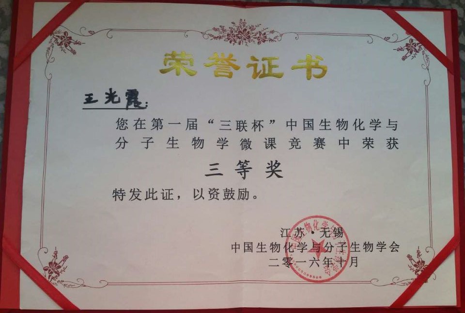 2016年10月24日,全国生物化学与分子生物学学会在无锡举办全国微课比赛,教研室经过假期和开学一个多月周密的计划和积极争取、个人积极的准备、教研室的严格把关,及时的与学会联系,派出王光霞、王志林、刘扬和李立民4老师参加了微课交流活动,其中王光霞为参赛者,获得了全国三等奖的好成绩。同时还参观了江南大学AG真人国际和食品学院的国家重点实验室,与那里的老师进行了近距离的沟通,老师们受益匪浅,看到了我们与其他学校的差距,领略了其他学校的风采,学习了他们的先进理念,对自己以后的工作也有了新的想法和触动,为自己的重新定位开了一个好头,也为我们的示范课程的微视频的制作提出了宝贵的建议。