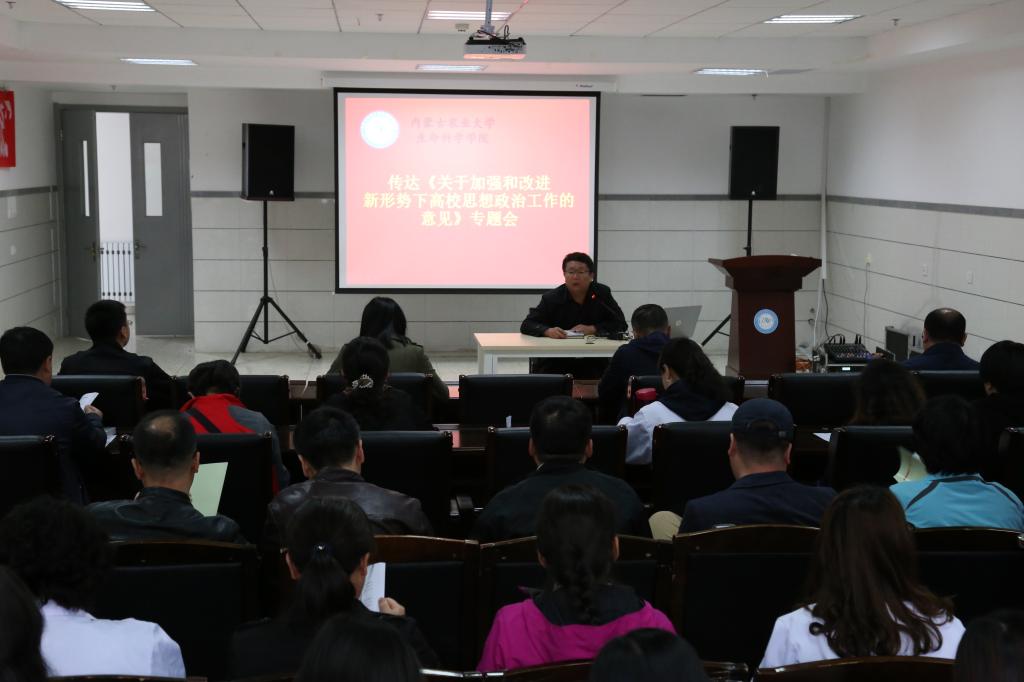 为深入贯彻全国、全区高校思想政治工作会议精神,进一步加强和改进公司思想政治工作,促进高等教育改革发展。4月13日下午3:00,AG真人国际于生科楼418会议室召开“关于加强新形势下高校思政教育工作专题会”。公司党委书记林宝主持会议,全体教职工参加此次会议。