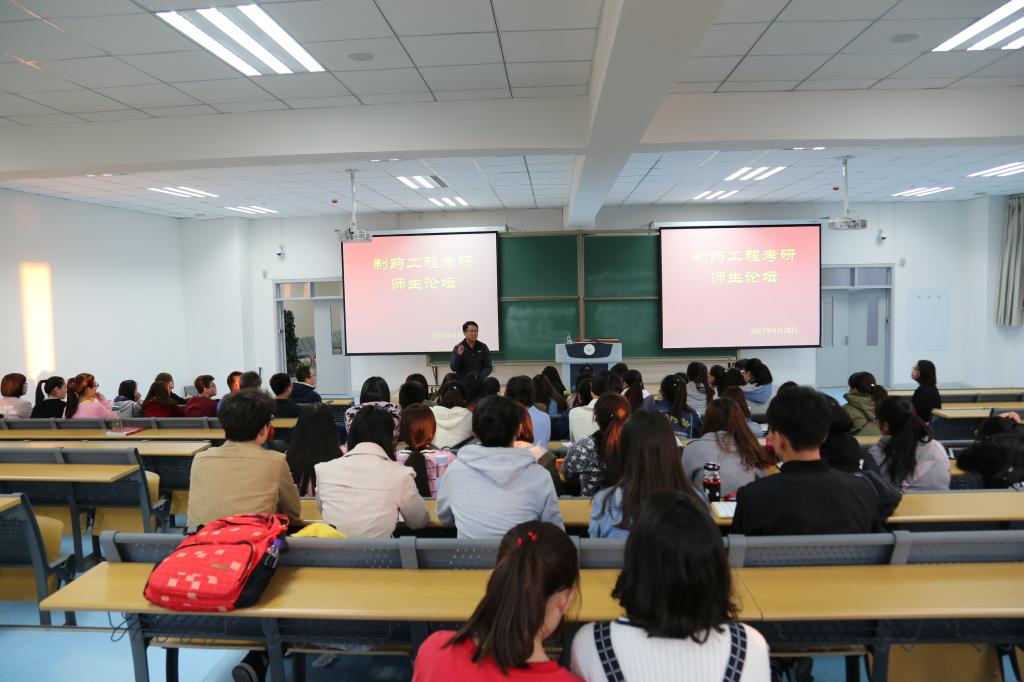 林书记指出,生物医药以及中蒙药发展是内蒙古十三五规划中的重头戏,制药工程专业的学生大有用武之地。研究生教育对于学习生物以及工程的同学都是一种深造和提高,经过科研的系统训练方能成就自己的精彩人生。林书记预祝大家考研成功。论坛邀请到2013级制药工程班郑红英、甘宁、张命娟、马烈、周子健、董志祥、杨晓慧、张杰来做考研经验交流。由学院自己培养的硕博连读生钟睿博的分享是本次论坛的一大亮点。