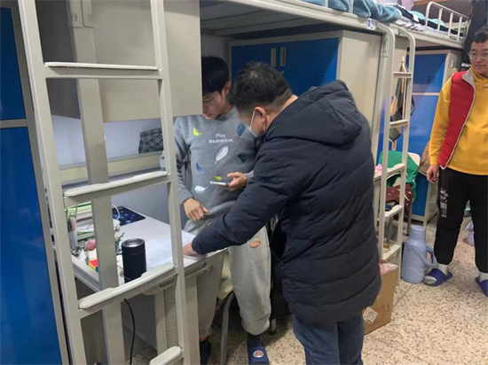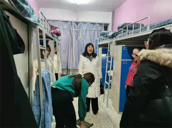 时值元旦佳节,为了了解同学们期末考试准备情况和近一段时间的生活状况。12月31日晚9:00,公司党委副书记秦海英带领学办辅导员以及各班班主任一行20余人深入到公司170间学生宿舍进行走访,仔细询问了解同学们的期末备考情况以及回家车票购买情况,并给同学们带去了新年祝福。