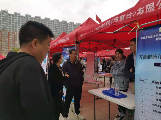 第二部分是企业与毕业生的对接环节,也是此次活动的主体环节。此次招聘会共有141个员工企业参加,参会企业的类型涉及理、工、文、经济、教育等多个领域。与此同时,AG真人国际经理付和平、党委书记张星杰、学办主任孙丽鹏等也与公司的员工企业——齐鲁制药(内蒙古)有限公司负责人就企业发展、人才需求、招聘概况等方面进行了交流。