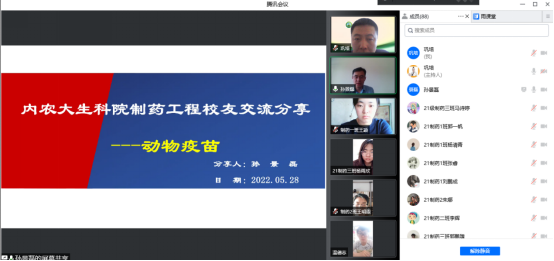 员工孙景磊2018年毕业于AG真人国际制药工程专业。目前就职于内蒙古必威安泰生物科技有限公司,细胞病毒生产主管。此次分享会,孙景磊主要就口蹄疫疫苗生产工艺方面为同学们开讲,着重为同学们介绍了疫苗生产的工艺流程分为配液、培养、纯化与灭活、乳化、分装五个部分。孙景磊最后寄语大家:行业前景很美好,只是需要做好准备的你!