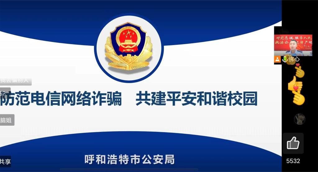 本次讲座期间,警官通过现场宣讲、图文展示、视频学习等方式为新生全方位讲解了有关防范电信网络诈骗的知识、案例、预防方法以及学生群体诈骗案件的特点。再现了网络购物、游戏充值、校园网贷等在大学生群体中多发的诈骗类型,以多种形式、多种方法让学生们切实提高了反诈的安全意识。随后,毛惠春教导员引导广大师生下载国家反诈中心APP,并向同学们发放了《致广大高校师生的一封信》等宣传单。