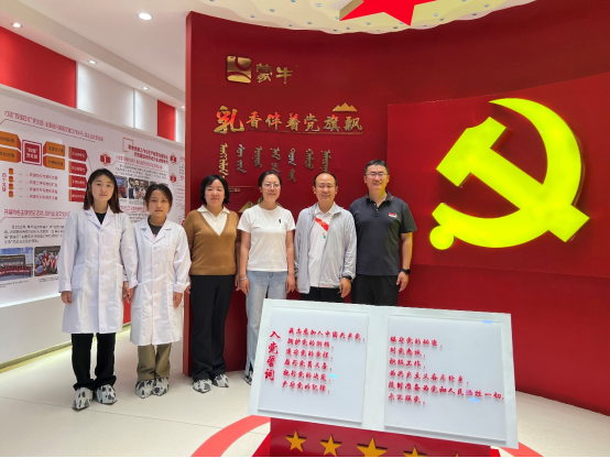 在带领认知专业实习的路上,同时参观了蒙牛的“乳香伴着档期飘”的党员活动站,伴随着奶香的飘扬,心怀“国之大者”坚定民族奶业振兴,牢记习近平总书记的强调,中国人的饭碗任何时候都要牢牢端在自己手上。聚焦党建工作与生产经营深度融合,以党建为抓手,推动基层党组织攻坚克难促发展。