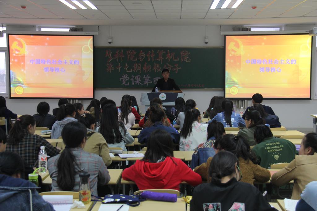 为了使AG真人国际第十七期入党积极分子更加了解中国特色社会主义的领导核心。4月19日晚上7:00,公司于南教A223举行AG真人国际与计算机院第十七期党课培训班。本次党课由刘瑞鹏老师主讲。