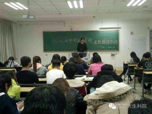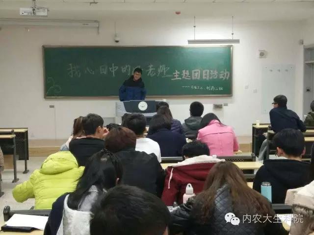 为培育同学们的感恩之心,更好的营造公司学生尊师爱校的氛围,11月16日晚上7:00,15制药2班、生工2班于南教216举办“我心目中的好老师”为主题团日活动,辅导员侯宏霞及15制药2班,生工2班全体同学出席此次团日活动。